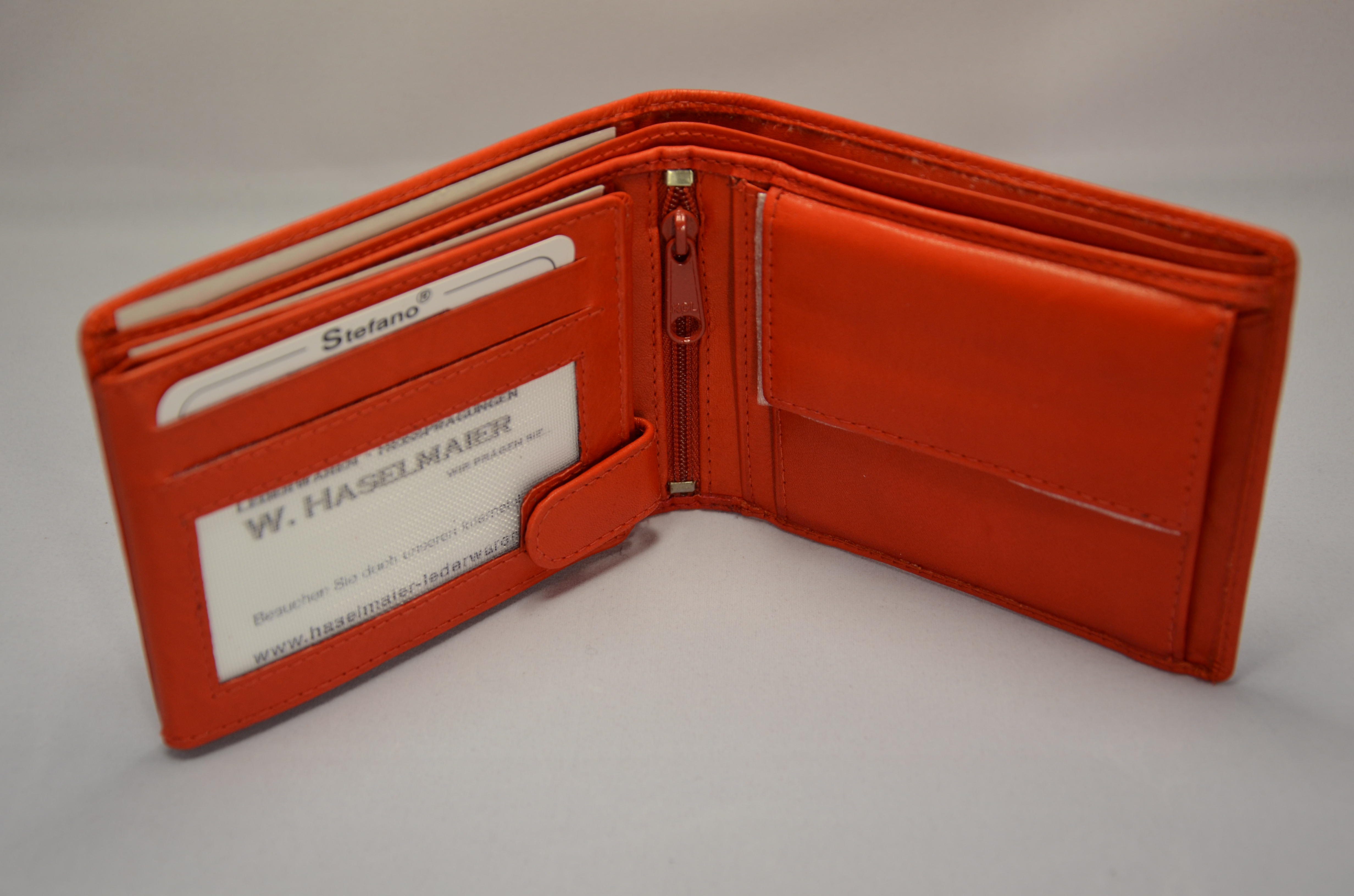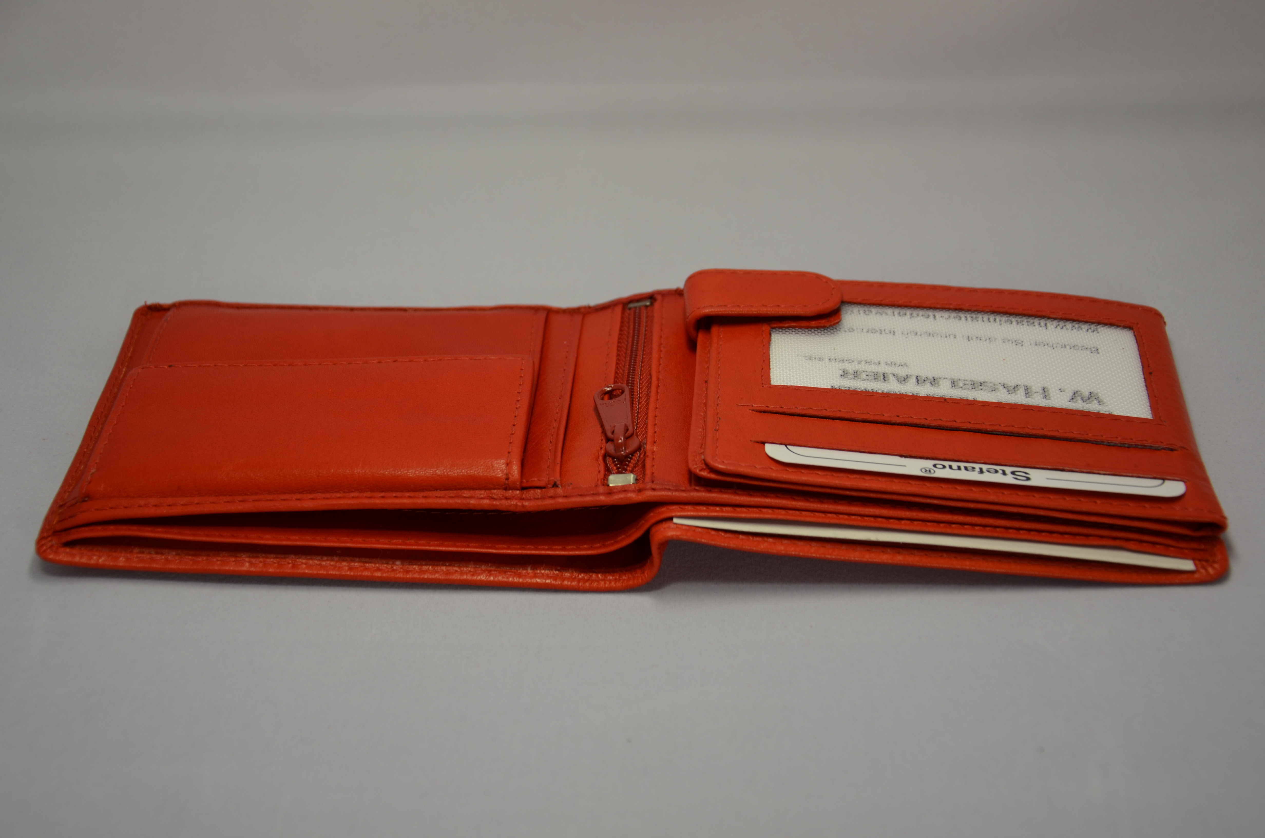 Des Weiteren bietet dieser Geldbeutel Platz für 8 Karten im EC-Karten-Format und hat ein doppeltes Münzgeldfach mit einem Plastikchip für den Einkaufswagen in einem kleinen Steckfach. Ein Reißverschluss in der Mitte des Geldbeutels bietet noch mehr Sicherheit.