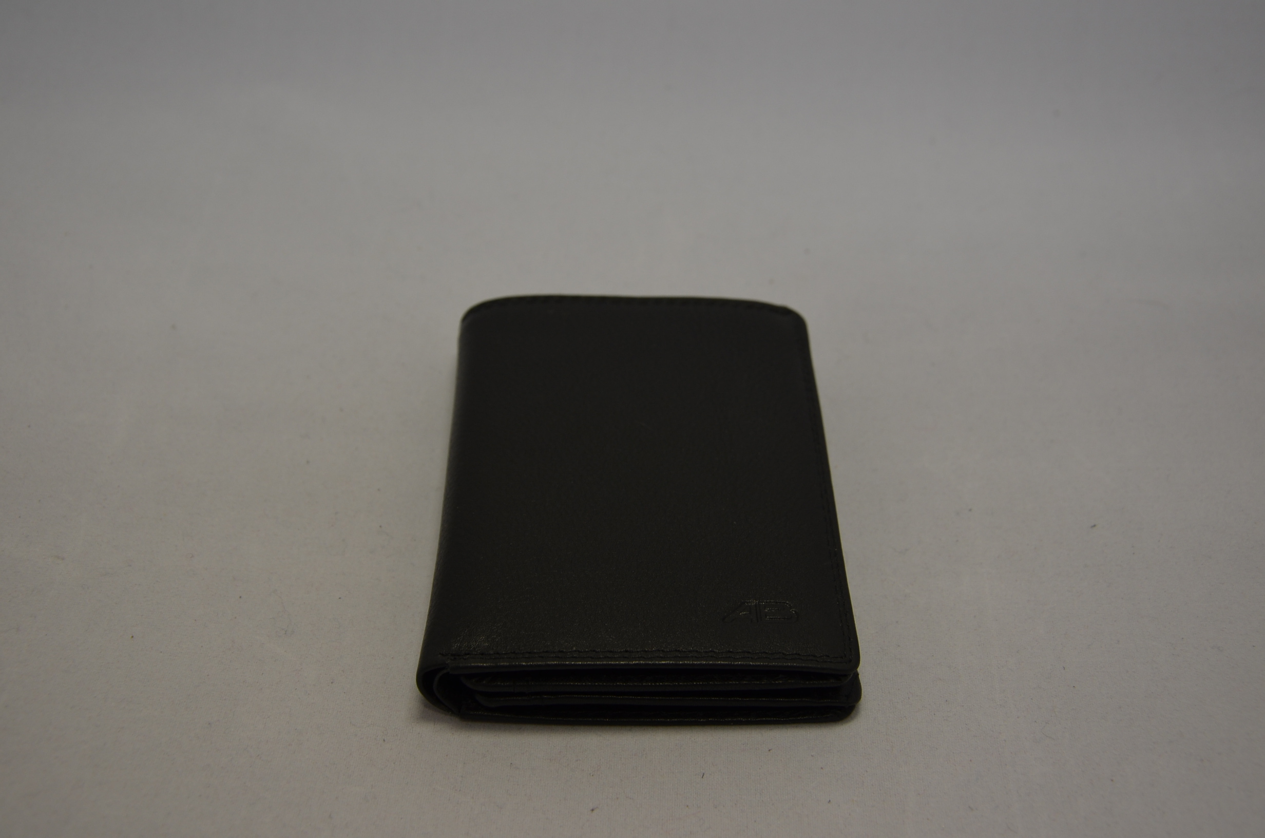 Dieses Ausweismäppchen ist aus hochwertigem, robustem Leder und hat an den Außenseiten eine Doppelnaht. In der rechten Vorderecke befindet sich die Blindprägung AB. Im Inneren ist das Ausweismäppchen einfach genäht und hat ein schwarzes Futter ebenfalls mit dem Markennamen AB.