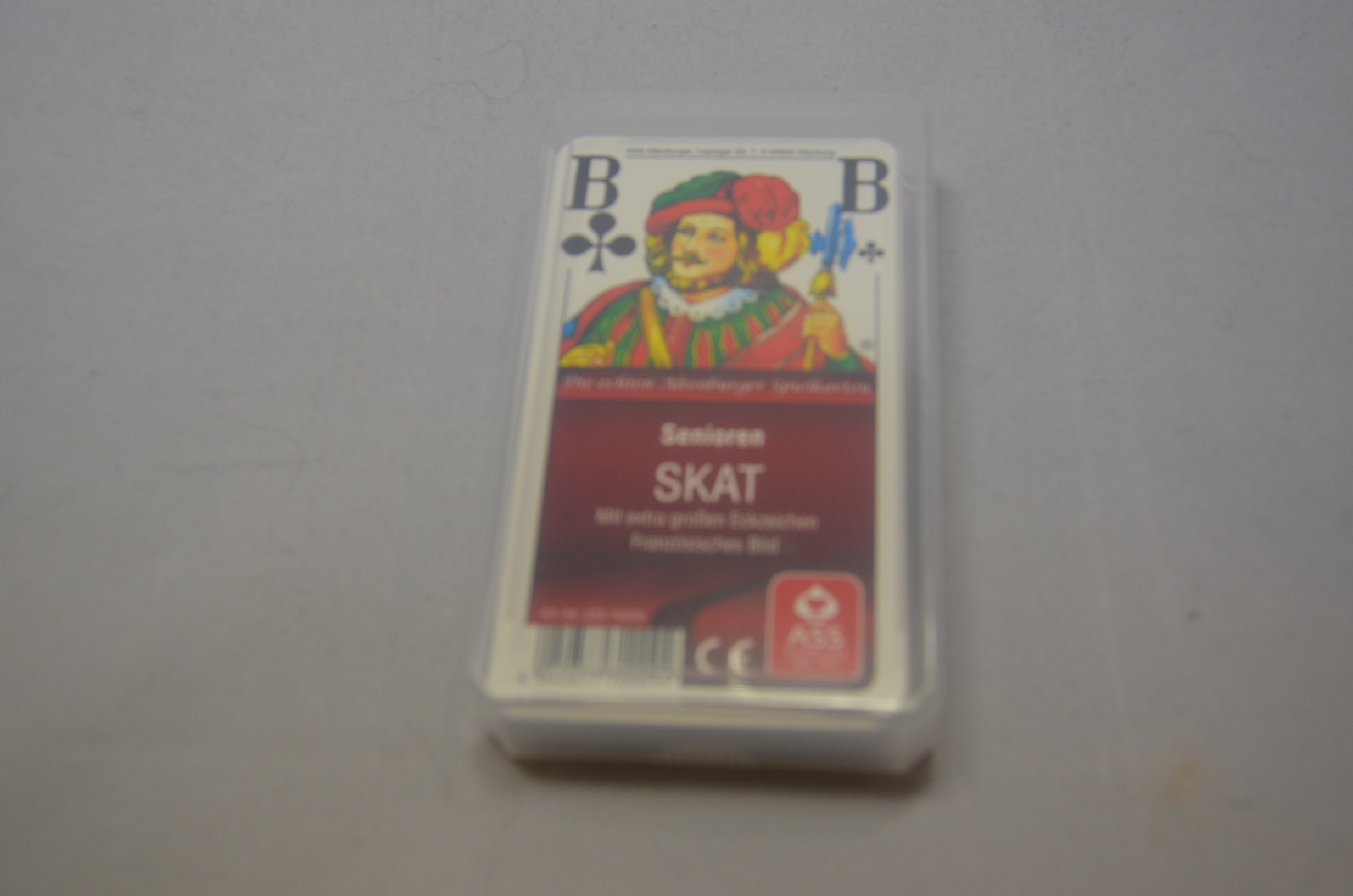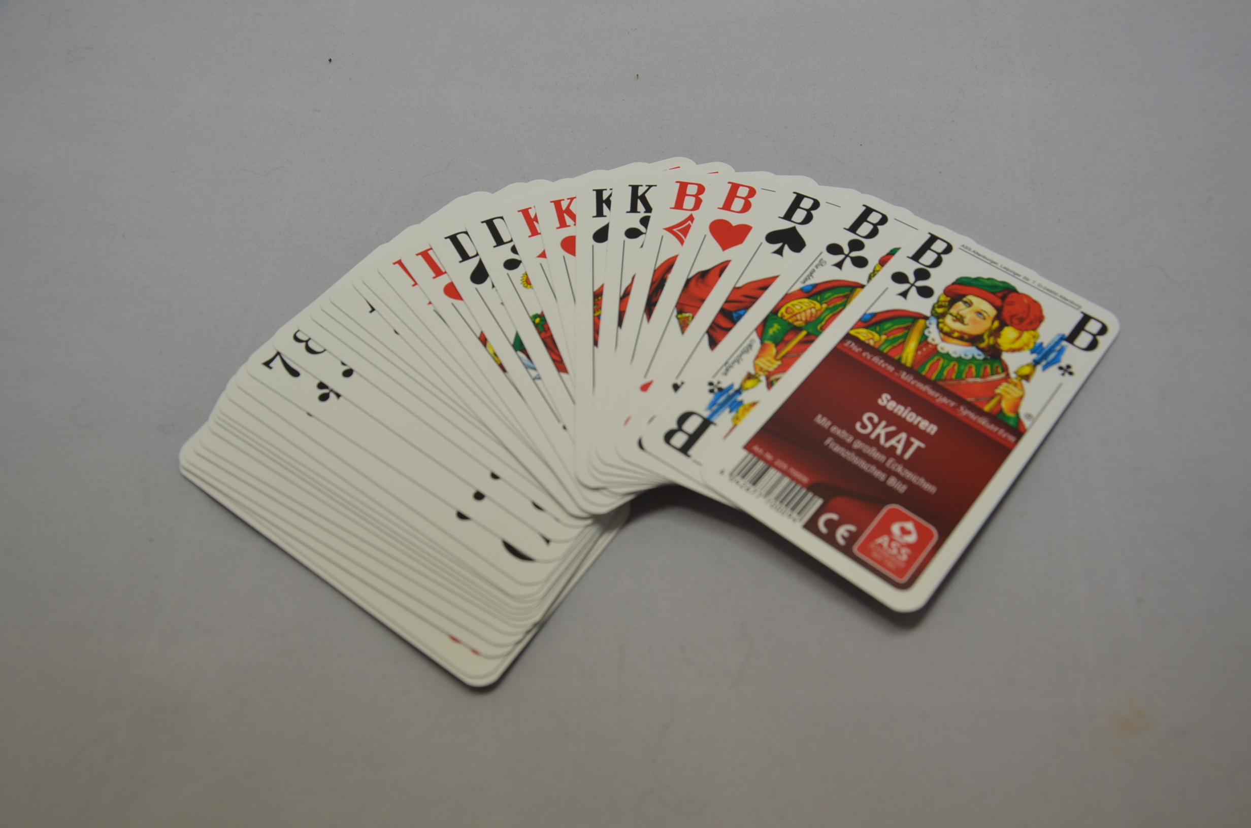 Senioren-Skatkartenspiel mit Prägung | Rückseite dunkelblaue Ornamentverzierungen
