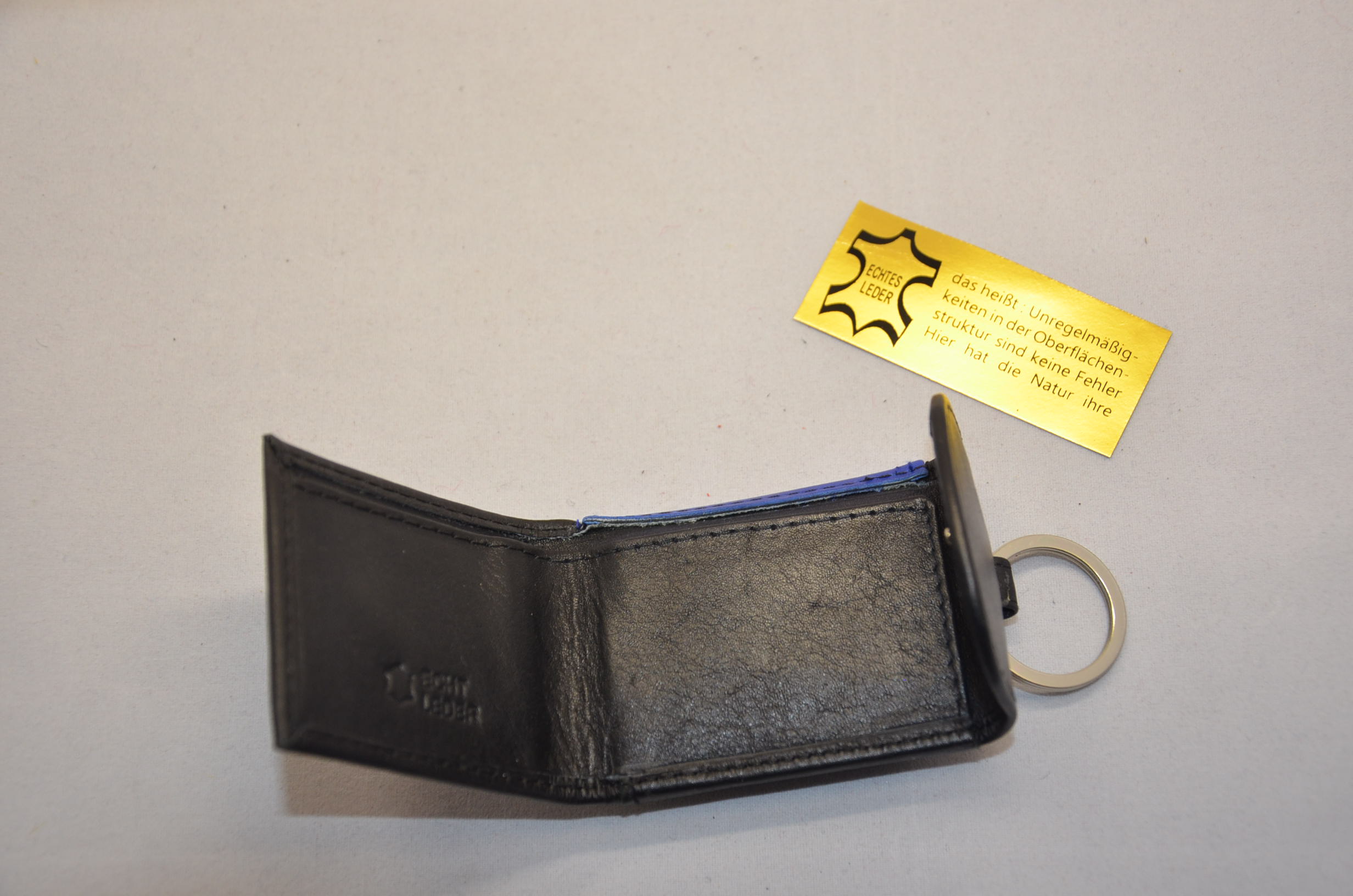 Schlüsselanhänger "kleiner Muck" - schwarz mit blauer Kleingeldlasche
